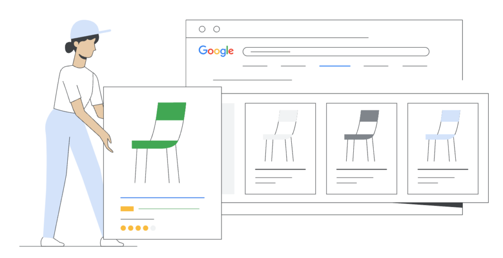 Shopping-campagnes tonen productafbeeldingen, prijzen en winkelinformatie in de zoekresultaten van Google.