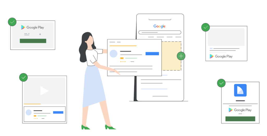 App-campagnes promoten je mobiele app op verschillende Google-netwerken, inclusief Google Zoeken, Google Play, YouTube en het Google Display Netwerk.